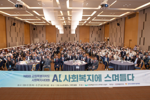 강원특별자치도사회복지사협회가 주최한 이날 행사는 ‘AI, 사회복지에 스며들다’를 주제로 AI 기술의 확산에 따른 사회복지의 새로운 패러다임을 조명했다. 대회에는 박일규 한국사회복지사협회장을 비롯한 도내 사회복지 분야 관계자 350명이 참가해 사회복지사와 기관의 역할과 미래를 모색했다.