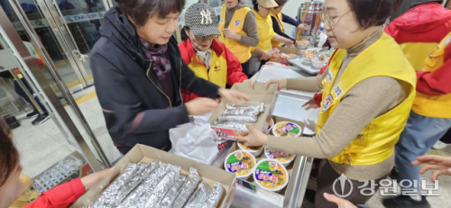 인제군 공무원들과 지역 사회단체 관계자들은 대피 주민들을 위해 임시 거주 텐트를 설치하고 식사를 제공하는 등 봉사활동에 나섰다.