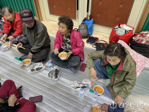 인제 하남리 일대는 고령화지역인데다 군부대 밀집지역이어서 대피 주민 절반이 노인들 또는 유치원·초등학교에 다니는 어린 아이들이었다. 고령의 주민들은 체육관 찬바닥에 임시 설치된 바닥매트에 모여 앉아 산불이 진화되기를 기다렸다. 반면 아이들은 상황의 심각성을 모른채 삼삼오오 모여 체육관 이곳저곳을 뛰어다녔다. 한쪽에서는 인제군 공무원들과 주민들이 모여 향후 대피소 운영방안 등의 상황을 공유하기도 했다.