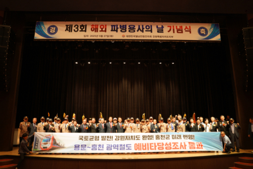 월남전 파병 용사들의 희생을 기리기 위한 제3회 해외 파병 용사의 날 기념식이 27일 홍천문화예술회관에서 열렸다. 대한민국월남전참전자회 강원특별자치도지부가 주최한 이날 행사에는 김진태 강원도지사, 김시성 도의장, 신경호 도교육감, 신영재 홍천군수, 홍성기 도의원, 박영록 홍천군의장, 방경종 강원지방병무청장, 정백규 강원서부보훈지청장, 이희주 11기동사단 부사단장, 김순교 월남전참전자회 강원특별자치도지부 유족회장 등 700여명이 참석했다. 대한민국 월남전참전자회는 1967년 ‘월남 참전 전우회’로 시작됐고 2012년 현재 명칭으로 변경됐다. ‘해외파병 용사의 날’은 국가보훈부가 2022년 관련 법률 개정을 통해 매년 5월 29일로 지정했고, 지역별로 기념식이 열리고 있다.
