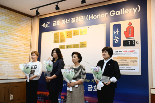 속초시 금호동 지역사회보장협의체와 동주민센터는 16일 주민센터에서 신규 금호 아너(Honor) 제8, 9, 10, 11호 회원가입 기념식을 개최했다. 이번에 새롭게 가입한 회원은 최근 3년 이내 500만원을 기탁하거나 기탁하기로 약정한 개인·소상공인, 1,000만원을 기탁하거나 기탁하기로 약정한 단체로 속초밥집(대표:이은자), 3849꼬마김밥(대표:김연숙), 시현이네회국수(대표:진선연), 참사랑교회(목사:김경하·장로:유왕재) 등 4곳이다.
