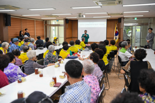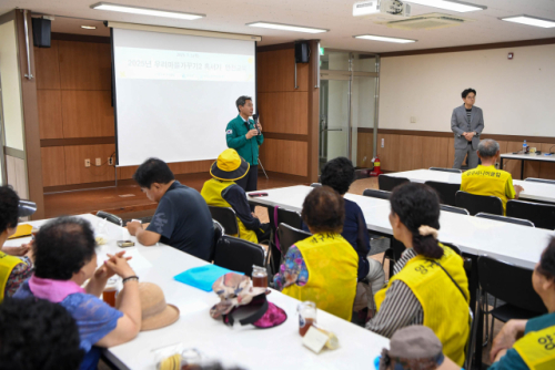 2025년 우리마을가꾸기 혹서기 안전교육이 3일 국토정중앙면 복지회관에서 서흥원 양구군수, 이진형 양구시니어클럽 관장, 양구시니어클럽 회원 등이 참석한 가운데 열렸다.