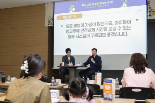 원강수 시장은 "원주시가 꿈꾸는 경제교육도시는 아이들이 다양한 경험을 통해 자기 삶을 주도적으로 설계하고 원주에 뿌리내리는 인재로 성장하도록 돕는 도시"라며 "그 시작을 위해 유익한 제안을 해준 시민과 학부모에게 감사하다"고 했다.