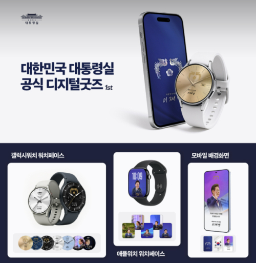 대통령실은 안드로이드 운영체제(OS)를 탑재한 스마트워치와 애플워치, 일반 스마트폰용 배경화면 등 총 14종의 디지털 굿즈를 제작했다. 대통령 휘장과 이 대통령의 사진, 서명, 자필 문구 등이 활용됐다.
