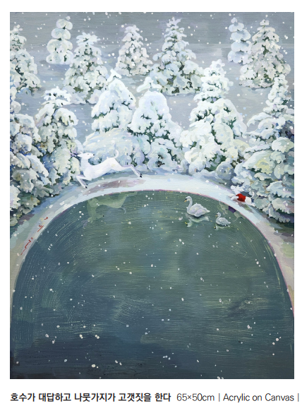 또 신철균 작가는 남설악 주전골의 봄 풍경을 통해 삶에 생기를 북돋아 주는 자연의 힘을 그려냈으며, 이종봉 작가는 꿈이 이루어지는 낙산사의 상징인 의상대를 주제로 동해 일출의 희망적인 감동을 단색화의 색 구성으로 표현했다. 특히 ‘최상의 선은 물과 같다’는 노자의 말처럼, 사람다움과 선함을 예술에 담아 인간을 이롭게 하는 가치를 추구한다고 밝힌 안용선작가의 ‘상선지몽(上善之夢)’도 눈길을 끄는 작품 중 하나다.