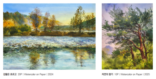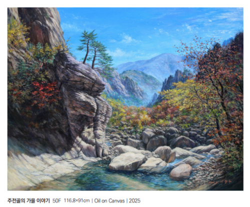 ‘양양태양’을 출품한 김덕림 작가는 서로 물들이고 물들이는 세상을 통해 아름다운 양양을 노래했고 김현철 작가는 자연의 고결한 빛깔과 계절의 변화가 주는 신비로움에서 창작의 영감을 얻으며, 이를 ‘시절인연’으로 표현했다. 김희국 작가는 남애 해변의 아름다운 바다색을 화폭에 옮기며 하늘과 바다 사이에 자신이 존재하는 순간을 담아냈고, 박동국 작가는 설악산 주전골의 생기 넘치는 풍경을 통해 삶에 활력을 불어넣는 자연의 힘을 화폭에 담았다.
