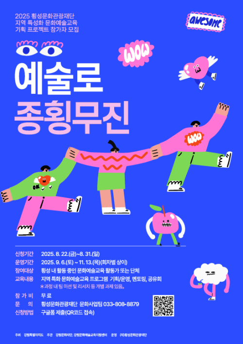횡성문화관광재단(대표이사:이재성)은 오는 31일까지 지역맞춤형 기획 프로젝트 '예술로 종횡무진' 참가자를 모집한다.