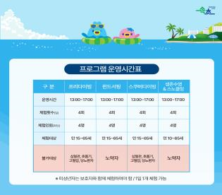 프로그램은 윈드서핑, 스쿠버다이빙, 프리다이빙 등으로 구성되며, 사고 상황에서 자력으로 생명을 보호할 수 있도록 돕는 생존수영 교육도 함께 진행된다.