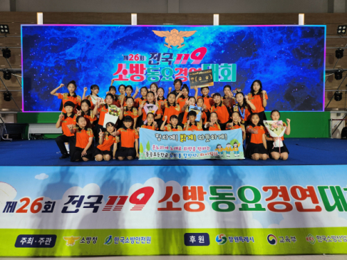 【철원】철원소방서(서장:최임수)는 강원특별자치도 대표로 제26회 전국119소방동요경연대회에 참가한 철원 동송초가 금상을 수상했다고 18일 밝혔다. 동송초는 18일 경남 마산로봇랜드 컨벤션센터에서 열린 이번 대회에 '초록숲을 지켜주세요'를 불러 심사위원단으로부터 높은 평가를 받았다.