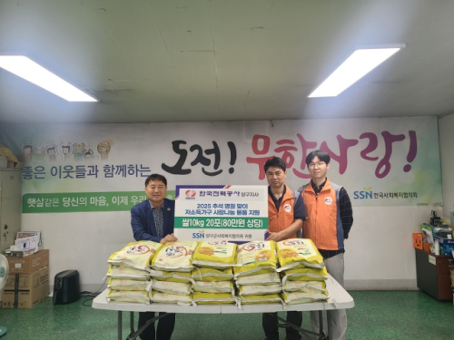한국전력 양구지사(지사장:정종성)는 25일 양구군사회복지협의회를 찾아 저소득 소외계층을 위한 사랑의 쌀 나누기 봉사를 실시하고, 양구오대쌀 20포대를 후원했다. 한전 양구지사는 직원들이 자발적으로 모금한 ‘러브펀드’를 활용해 봉사활동을 펼치고 있다.