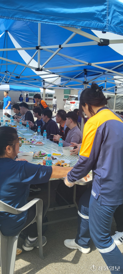 자유총연맹 삼척시지회 여성회원들은 29일 삼척시 장애인종합복지센터에서 공연과 함께 짜장면을 만들어 대접했다.