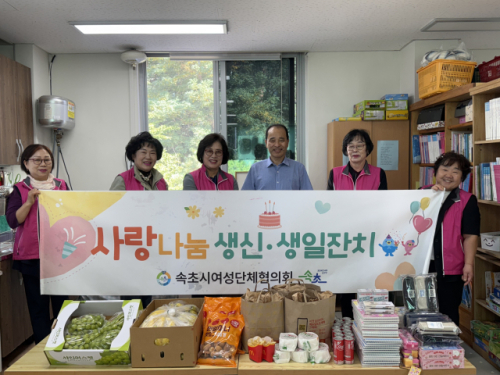 속초시여성단체협의회(회장:박주희)는 29일 새마을 지역아동센터와 아띠의집을 방문해 이용 아동에게 식자재와 학용품, 간식 등을 전달하는 ‘사랑나눔 생일잔치’를 개최했다.