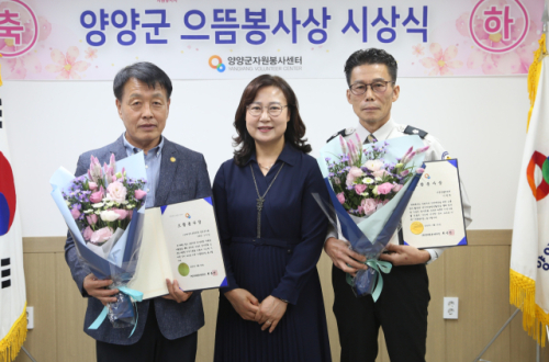 양양군자원봉사센터(센터장:최윤선)는 지난 30일 센터에서 2025년 3분기 으뜸봉사상 수상자로 개인 부문 이병희씨(서면자율방범대)와 단체 부문 한국자유총연맹 양양군지회(지회장:김연길)를 선정해 시상했다.