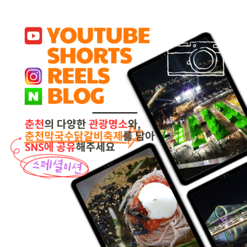 참가자는 막국수와 닭갈비 리뷰, 추천 맛집 소개, 축제 홍보 영상이나 릴스 제작, 축제 현장 방문 후기, 춘천 관광지 전반 소개 등 다양한 주제로 응모할 수 있다.