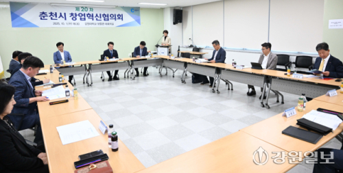 제20차 춘천시 창업혁신협의회가 1일 강원대 춘천캠퍼스 보듬관에서 육동한 시장, 정재연 강원대 총장, 최양희 한림대 총장을 비롯한 창업혁신협의회 위원 및 관계자들이 참석한 가운데 열렸다.