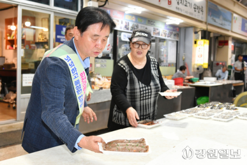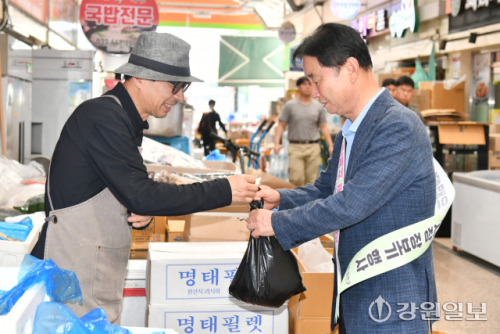 화천군은 추석명절 연휴를 앞둔 2일 전통시장에서 최문순 군수를 비롯한 직원들이 참석한 가운데 장보기 행사를 개최했다. 추석용품을 구매한 군청 직원 전원은 이날 시장 내 음식점에서 점심식사를 함께 했다.