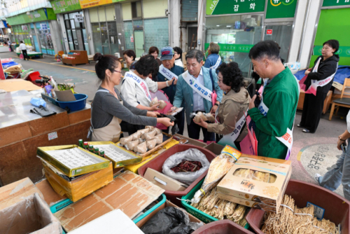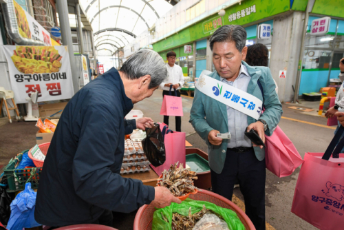추석맞이 전통시장 장보기 및 전통시장 활성화 간담회가 지난 3일 양구중앙시장에서 열렸다. 이날 서흥원 양구군수, 정창수 양구군의장 및 군의원, 김왕규 강원특별자치도의원, 정철수 양구중앙시장상인회장 및 기관·사회단체장 등이 참석해 명절 물가를 점검하고 전통시장 활성화 방안을 논의했다.