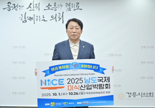 최익순 강릉시의장이 ‘2025 남도국제미식산업박람회’의 성공 개최를 기원하는 릴레이 응원 챌린지에 동참했다. 이번 챌린지는 남도의 우수한 미식 자원과 식품산업의 가능성을 알리고 전국적인 관심과 참여를 이끌어내기 위해 추진됐다. 최익순 의장은 경상북도 경주시의회 이동협 의장의 지목을 받아 챌린지에 동참, 다음 주자로 서울특별시 강동구의회 조동탁 의장을 지목했다.