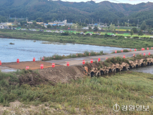 또 지난달 집중호우때 임시가도가 범람되면서 주민불편이 가중되고 안전이 우려돼 시가 임시가교(철교)를 시설해 통행에 안전을 확보하려 했지만, 행정안전부가 우회도로가 있다는 점을 강조하면서 사전설계심사전 임시가교 설치는 무산됐다.