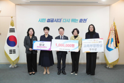 시립 우두나무어린이집(원장:김혜옥)은 13일 춘천시민장학재단(이사장:육동한 춘천시장)에 100만 원을 기부했다. 이번 기부금은 우두나무어린이집이 ‘제4회 아이누리 자연스럽게 먹자’ 교육프로그램 공모전에서 교육부장관상 우수상을 수상하면서 받은 상금 중 일부로 마련됐다.