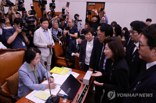 이날 천대엽 법원행정처장도 조 대법원장의 이석을 수 차례 요구했지만 추 위원장은 이를 받아들이지 않은 채 의사 진행을 계속했고, 국민의힘 의원들의 항의가 이어졌다.