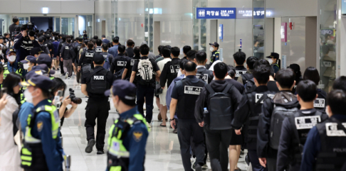 현장에는 경찰 특공대원들이 소총을 든 채 배치됐고, 경찰 기동대와 공항현장대응단 인력 215명이 동원돼 철통 경비가 유지됐다.