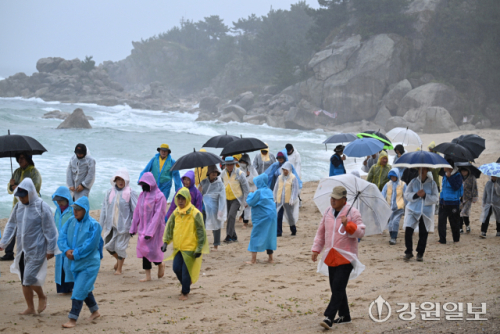 ‘풋풋한 고성 해변길 맨발걷기’ 성료…가을비와 함께 특별한 경험