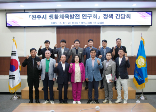 원주시의회 의원연구단체인 '생활체육발전 연구회'(대표의원:심영미)는 지난 17일 시의회 1층 모임방에서 시 체육회와 시청 체육과 직원 등과 함께 정책 간담회를 열고, 생활체육 활성화를 위한 다양한 현안과 정책 과제를 논의했다. 이날 간담회에서는 생활체육시설 확충 및 노후 공공체육시설 정비·이전, 원주시 체육회의 조직 진단과 인력 충원, 생활체육지도자 처우 개선, 청소년 방과 후 체육 프로그램 지원 확대 등이 안건으로 제시됐다. 연구회는 또 이날 남부복합체육센터와 동부복합체육센터 등 체육시설을 찾아 시설 현황을 살피고 운영 상황을 점검했다.