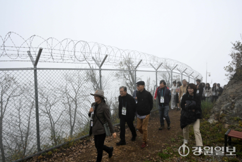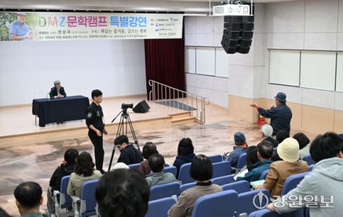 DMZ백일장이 19일 화천체육관에서 '경계'와 '바람길'을 주제로 학생·성인·군장병들이 참여한 가운데 열렸다. 신세희기자DMZ백일장이 19일 화천체육관에서 '경계'와 '바람길'을 주제로 학생·성인·군장병들이 참여한 가운데 열렸다. 신세희기자DMZ문학캠프 참여자들이 지난 18일 화천 백암산케이블카에서 접경지역의 생태와 안보에 대해 알아가고 있다. 신세희기자DMZ문학캠프 참여자들이 지난 18일 화천 백암산케이블카에서 접경지역의 생태와 안보에 대해 알아가고 있다. 신세희기자DMZ문학캠프 참여자들이 지난 18일 화천 평화의댐에서 세계 평화의 종 제작 배경에 대해서 듣고 댐 일대를 둘러보았다. 신세희기자DMZ문학캠프 참여자들이 지난 18일 화천 평화의댐에서 세계 평화의 종 제작 배경에 대해서 듣고 댐 일대를 둘러보았다. 신세희기자전상국 소설가가 지난 18일 화천커뮤니티센터에서 DMZ 문학캠프 일환으로 열린 특별 강연에 참여해 '책 읽는 즐겨움, 글 쓰는 즐거움'에 대해 말하고 있다. 신세희기자전상국 소설가가 지난 18일 화천커뮤니티센터에서 DMZ 문학캠프 일환으로 열린 특별 강연에 참여해 '책 읽는 즐겨움, 글 쓰는 즐거움'에 대해 말하고 있다. 신세희기자