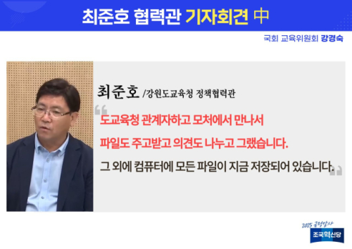 조국혁신당 강경숙 국회의원은 지난 8월 최준호 정책협력관의 '도교육청의 선거 개입' 폭로와 관련해 집중적으로 따져 물었다.