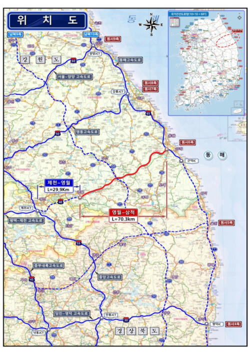 영월에서 삼척으로 이어지는 70.3㎞ 구간은 강원 남부권을 관통하는 핵심 동서축이다. 태백산맥으로 인해 내륙과 동해안이 단절돼 있던 지역을 직접 연결하는 길로, 강원 교통망의 ‘미완의 퍼즐’을 완성하는 사업이다.