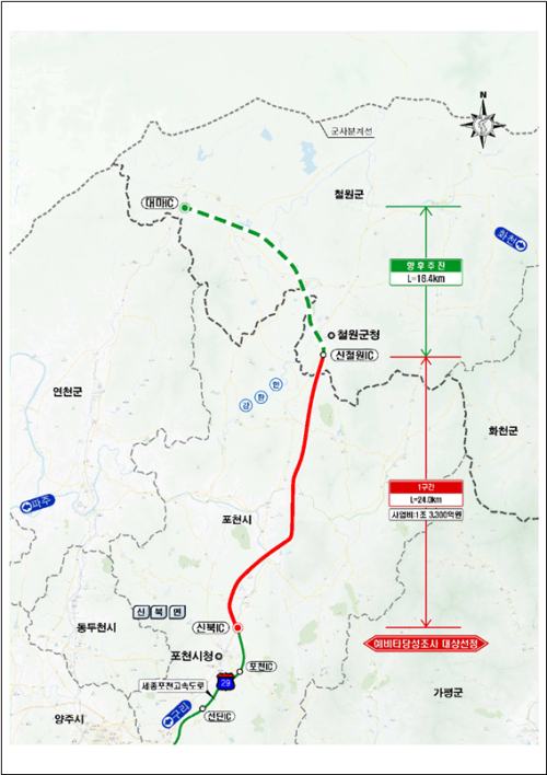강원 북부의 철원과 경기 포천을 잇는 24㎞ 구간은 ‘남북 4축’의 일부로, 단순한 지역 간 연결을 넘어 한반도의 미래와 직결된 길이다.