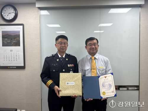삼척경찰서는 23일 KB동해영업소 삼척대리점을 찾아 이인삼 관리장에게 경찰서장 감사장을 전달했다