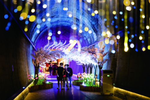 동굴 내부는 ‘돌무더기 정령’이라는 스토리텔링을 중심으로 구성됐다. 폐쇄됐던 생림터널의 과거를 재조명하는 콘텐츠는 자연의 4요소인 빛, 소리, 바람, 매화를 활용해 감각적으로 풀어냈다. 터널의 시간성과 감성을 시각화한 콘텐츠는 방문객의 오감을 자극하며 깊은 인상을 남긴다.
