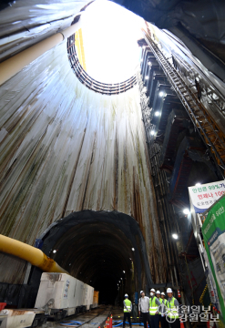 ■[르포]‘서울~춘천~속초 99분’…철도 혁명 현장을 가다=지난 16일 본보 취재진들은 춘천~속초 동서고속철도 1공구(춘천시 근화동~신북읍) 공사현장을 찾았다. 춘천 우두동 현장에 도착하자 깊이 62m, 직경 18m 규모의 지하 수직 터널이 취재진의 시선을 빨아들였다. 땅 위에 생겨난 ‘블랙홀’ 같았던 이 터널은 지하철도 비상 상황 발생 시 승객 대피와 연기를 배출하는 초대형 환기구다.