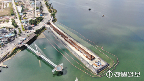현재 의암호 수면 위에는 도로 형태의 임시 구조물인 ‘가몰막이’가 설치돼 있다. 강 밑에 길이 995m 터널을 만들기 위한 첫 단추가 꿰매진 셈이다. 이날 찾은 하저터널 공사 현장에서는 토사 붕괴, 지하수 유입 등의 위험을 방치하기 위한 ‘흙막이 가시설 및 굴착 공사’가 진행되고 있었다. 이와 같은 기초 작업이 끝난 뒤 올 11월부터 의암호 지하를 40∼50m 깊이로 파 내려가기 위한 공사가 본격적으로 시작될 예정이다. 하저터널이 완성되면 가물막이는 완벽히 철거돼 의암호의 아름다운 절경이 유지된다.