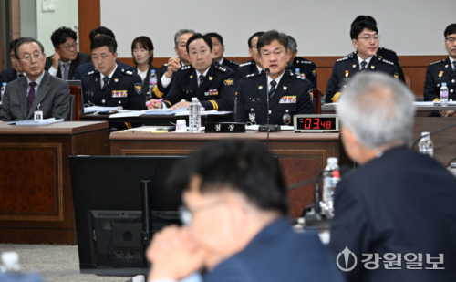 같은 날 오후에 진행된 강원경찰청 국정감사에서는 한학자 통일교 총재 등 지도부의 ‘해외 도박 수사무마 의혹’ 춘천경찰서 첩보 유출사건, 직원들의 음주비위, 강원학원 사학 비리 수사의지 부족 등에 대한 질타가 있었다.