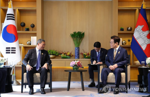 한-아세안(ASEAN) 정상회의 참석차 말레이시아를 방문 중인 이재명 대통령은 27일(현지시간) 훈 마네트 캄보디아 총리와 정상회담을 갖고 한국인을 대상으로 하는 스캠범죄 등에 대응하기 위한 '코리아 전담반'을 운영하기로 했다.