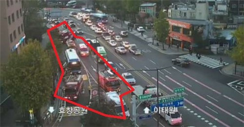 28일 출근 시간대 서울 용산구 삼각지역 인근을 지나던 시내버스에서 냉각수가 유출돼 30대 승객이 화상을 입었다.