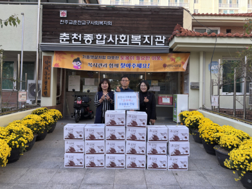 【춘천】춘천시자원봉사센터 소속 춘천시가족봉사단은 28일 강원특별자치도장애인종합복지관, 춘천남부노인복지관, 춘천종합사회복지관 등 지역 내 4개 복지관에 방문해 고구마 200㎏를 각각 전달했다.