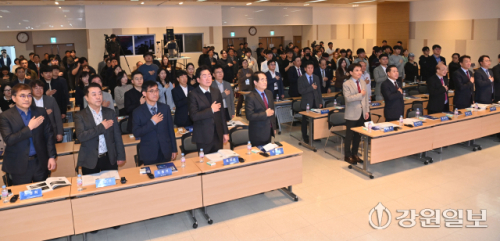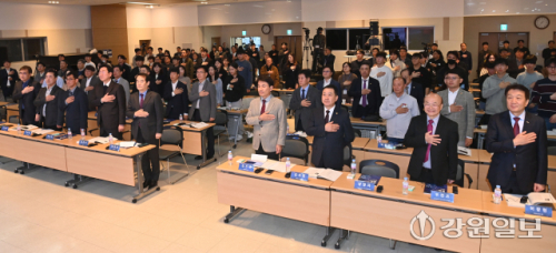 김시성 도의장이 축사를 하고 있다. 원주=박승선기자