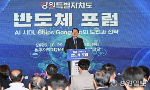 '2025 강원특별자치도 반도체포럼'이 29일 원주의료기기산업진흥원에서 김진태 도지사, 박진오 강원일보사장, 김시성 도의장, 양향자 국민의힘 반도체·AI 첨단산업특별위원장, 원강수 원주시장, 우 친즈 ASUS 혁신실 CTO 박사, 조용기 원주시의장 등이 참석한 가운데 'AI시대, Chips Gangwon의 도전과 전략'을 주제로 열렸다.