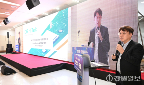 이종현 DB HiTek 상무가 30일 원주의료기기산업진흥원에서 열린 2025 강원자치도 반도체포럼에서 'AI 시대의 심장 ▶ 파워반도체 : Data-Center AC/DC 혁신'을 주제로 기조강연하고 있다. 신세희기자