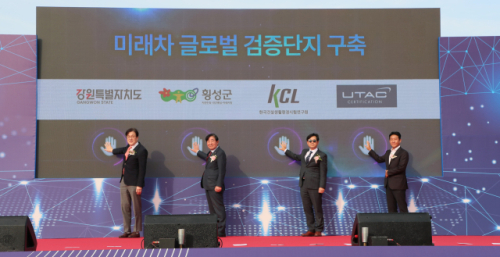 특히 이날 행사에서는 유럽형식인증 대응 시험평가체계 마련을 위한 강원특별자치도와 횡성군, 한국건설생활환경시험연구원(KCL), UTAC코리아 간 국내 최초의 글로벌 검증단지 구축 업무협약을 체결했다. 이번 협약으로 UTAC의 유럽 인증 체계와 연계된 국제인증 및 기술컨설팅 기반이 마련돼 미래차 기업들의 비용 절감 및 해외시장 진출 기반이 강화될 것으로 기대된다.