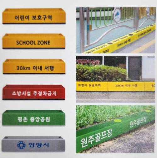 도로위험지역, 주정차 금지구역, 스쿨존, 회전교차로, 진·출입로 등에 소비자가 원하는 색상과 문자, 이미지를 인쇄한 제품을 설치할 수도 있다.