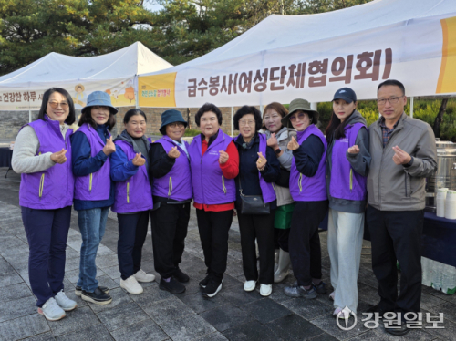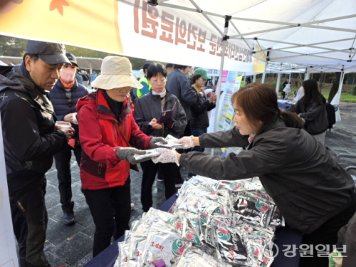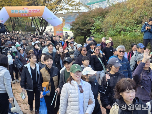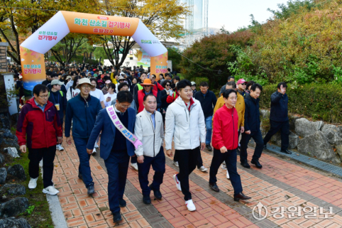 군민 산소길 걷기행사 1일 2,000여 명 참가해 대성황 농협·화천수력발전소 쌀 나눠주며 홍보 캠페인도 호평 최 군수, 류 의장 “직장애, 동료애, 가족애 다지는 계기”