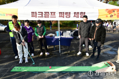 출발지인 원형공연장에서는 어린이 댄스공연을 비롯해 나만의 LED무드등 만들기, 핸드마사지, 편백나무 아로마체험, 파크골프 퍼팅체험,치매안심센터 부스, 안전보행 캠페인 등 부대 행사가 마련돼 호평을 받았다.