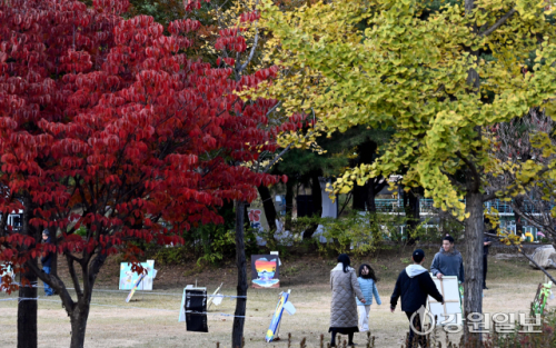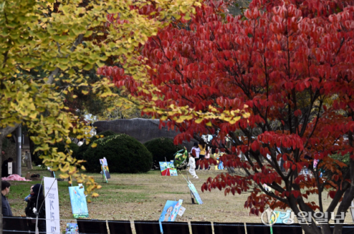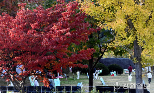 가을이 점차 깊어지는 가운데 2일 춘천시 의암공원에서 거리 전시회가 펼쳐져 눈길을 끌고 있다.