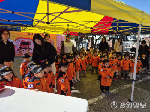 배움공동체 ‘티토’는 11월 9일 ‘소방의 날’을 앞두고 3일 춘천 퇴계연꽃어린이집 마당에서 영유아를 대상으로 한 재난 안전 체험 교육을 진행했다.