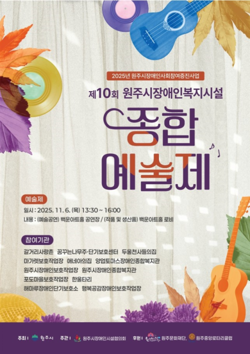 【원주】‘제10회 원주시장애인복지시설 종합예술제’가 오는 6일 오후 1시 30분부터 오후 4시까지 백운아트홀에서 개최된다.